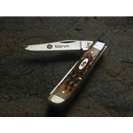 Its golden-amber hue and deep, dark Peachseed jigged handles allow the beauty of the natural bone to shine through.
