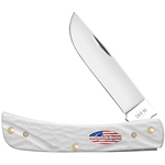 Case White Synthetic Handle Sod Buster Jr. with Flag Shield 52021 - Engravable