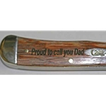 The Chestnut Bone Trapper illustrates laser engraving on the bone handle with a gold color fill and scrolled bolsters. There is a 25pc minimum for these embellishments.